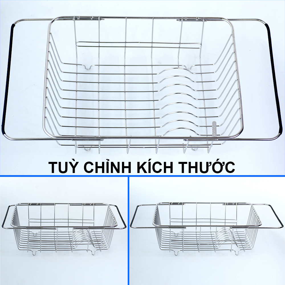 Kệ gác bồn rửa chán có thiết kế đặc biệt, thông minh và tiện dụng, có thể thay đổi kích thước chiều dài nên phù hợp với hầu hết các loại bồn rửa: Kích thước
