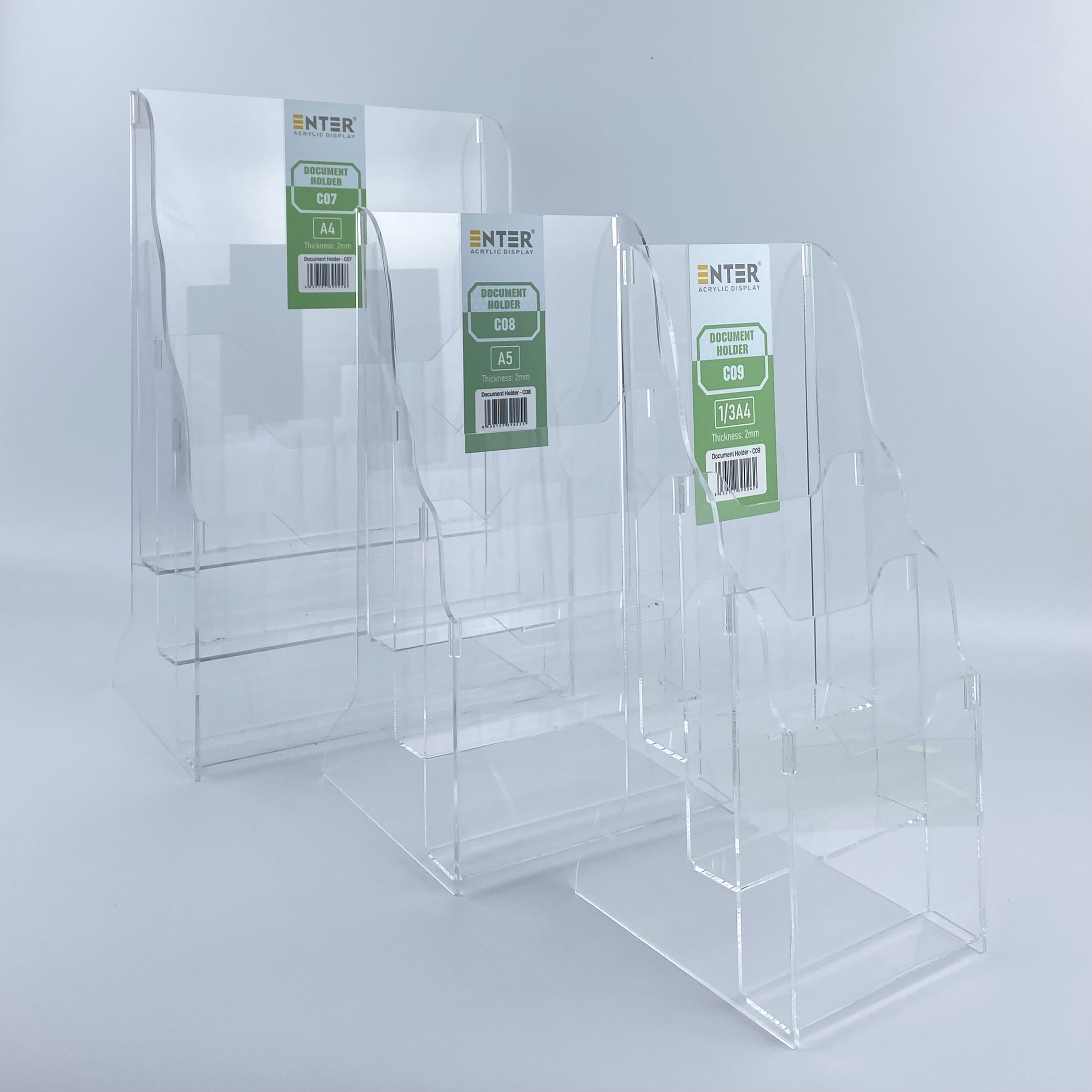 ✨Khay đựng giấy, Hộc đựng tờ rơi, Kệ mica nhiều giấy 3 ngăn Enter C07 210x300mm A4 đứng 2mm