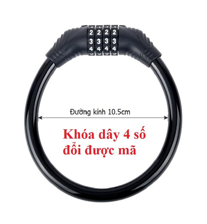 Khóa dây chống trộm mật mã 4 số không cần chìa - cắt không đứt, chống gỉ bảo vệ an toàn cho xe bạn 4