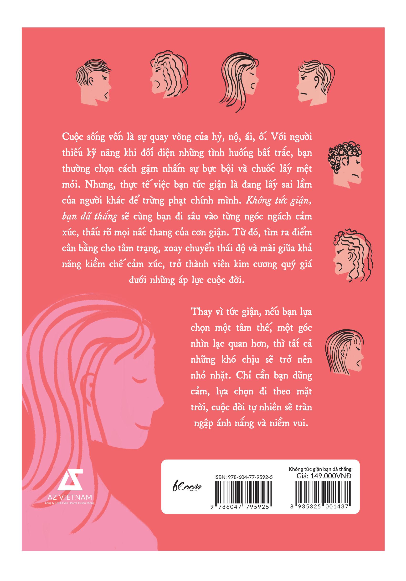 Không tức giận, bạn đã thắng sẽ cùng bạn đi sâu vào từng ngóc ngách cảm xúc, thấu rõ mọi nấc thang của cơn giận. Từ đó, tìm ra điểm cân bằng cho tâm trạng, xoay chuyển thái độ và mài giũa khả năng kiềm chế cảm xúc, trở thành viên kim cương quý giá dưới những áp lực cuộc đời.