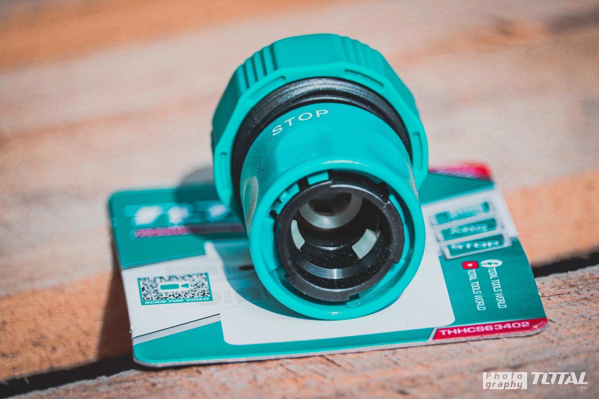 - Sản phẩm có kèm khớp nối nhanh - kết nối được 3 cỡ ống - khớp nối có chức năng ngắt nước khi rút vòi tưới ra.