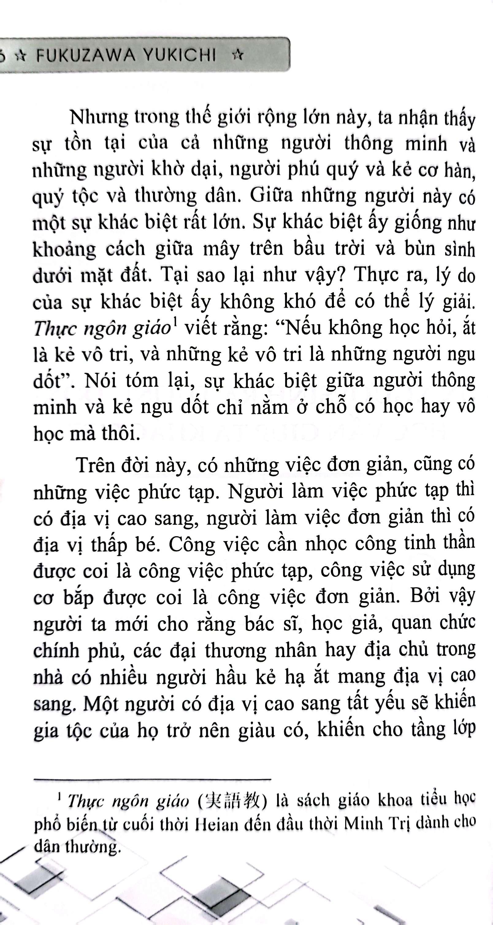 Đó là điều mà bạn sẽ tìm thấy khi chiêm ngẫm những trang của cuốn sách “Khuyến học” – một cuốn sách có ảnh hưởng vĩ đại đến người dân Nhật Bản nói riêng và những dân trên toàn thế giới nói chung – tạo ra một luồng gió mới khi nghĩ về vấn đề “học vấn”.