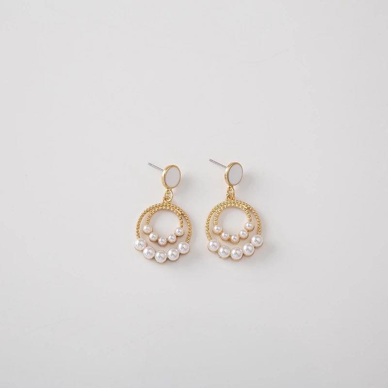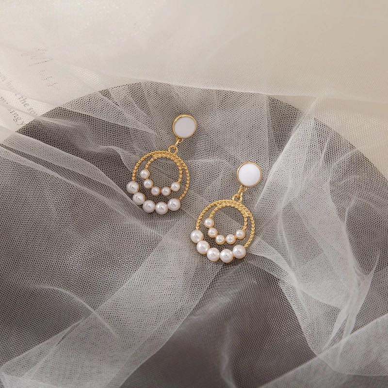 XTM || Bông tai kiểu dáng Vòng tròn ngọc trai thương hiệu XTM, thời trang Hàn Quốc sang trọng