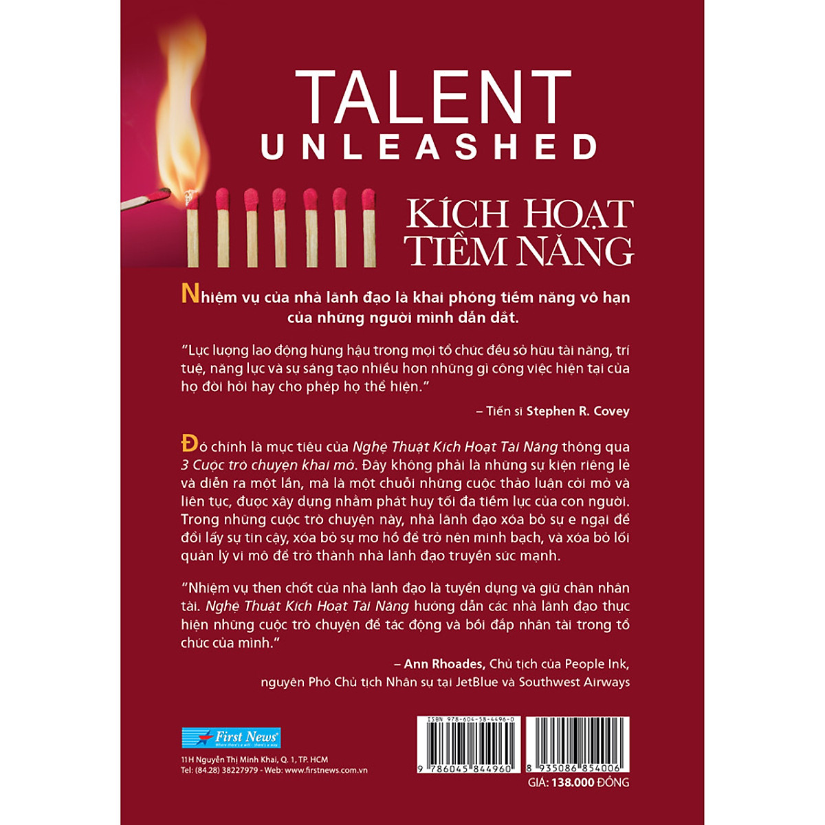 Cuốn sách giới thiệu về ba cuộc trò chuyện “quyền năng” giúp người lãnh đạo khai phóng tối đa tiềm lực của bất cứ ai xung quanh họ Đôi khi nhân viên của bạn cần một bước “nhảy vọt về niềm tin” để có thể dấn thân vào một vai trò giúp phát huy trọn vẹn mọi năng lực, giới hạn sáng tạo của họ.“Nghệ thuật lãnh đạo là truyền đạt cho người khác biết giá trị và tiềm năng của họ một cách rõ ràng, đến độ họ được truyền cảm hứng để nhận ra những điều đó trong chính con người mình”, tiến sĩ Stephen R. Covey, nhà giáo dục, doanh nhân, tác giả nổi tiếng từng chia sẻ. Cuốn sách gửi đi thông điệp: Vai trò cơ bản nhưng lại mang tính cốt lõi của người lãnh đạo chính là nhận diện, công nhận, và quan trọng nhất là kích hoạt được tiềm năng của từng cá nhân trong đội mình. “Kích hoạt tiềm năng” được viết bởi các tác giả thuộc FranklinCovey - tổ chức toàn cầu chuyên về đào tạo và phát triển lãnh đạo, kiến tạo văn hóa, triển khai chiến lược cho các doanh nghiệp. Trong cuốn sách, các tác giả trình bày 3 “cuộc trò chuyện khai mở”, được sử dụng để khai phá và kích hoạt tài năng của đội ngũ nhân viên: