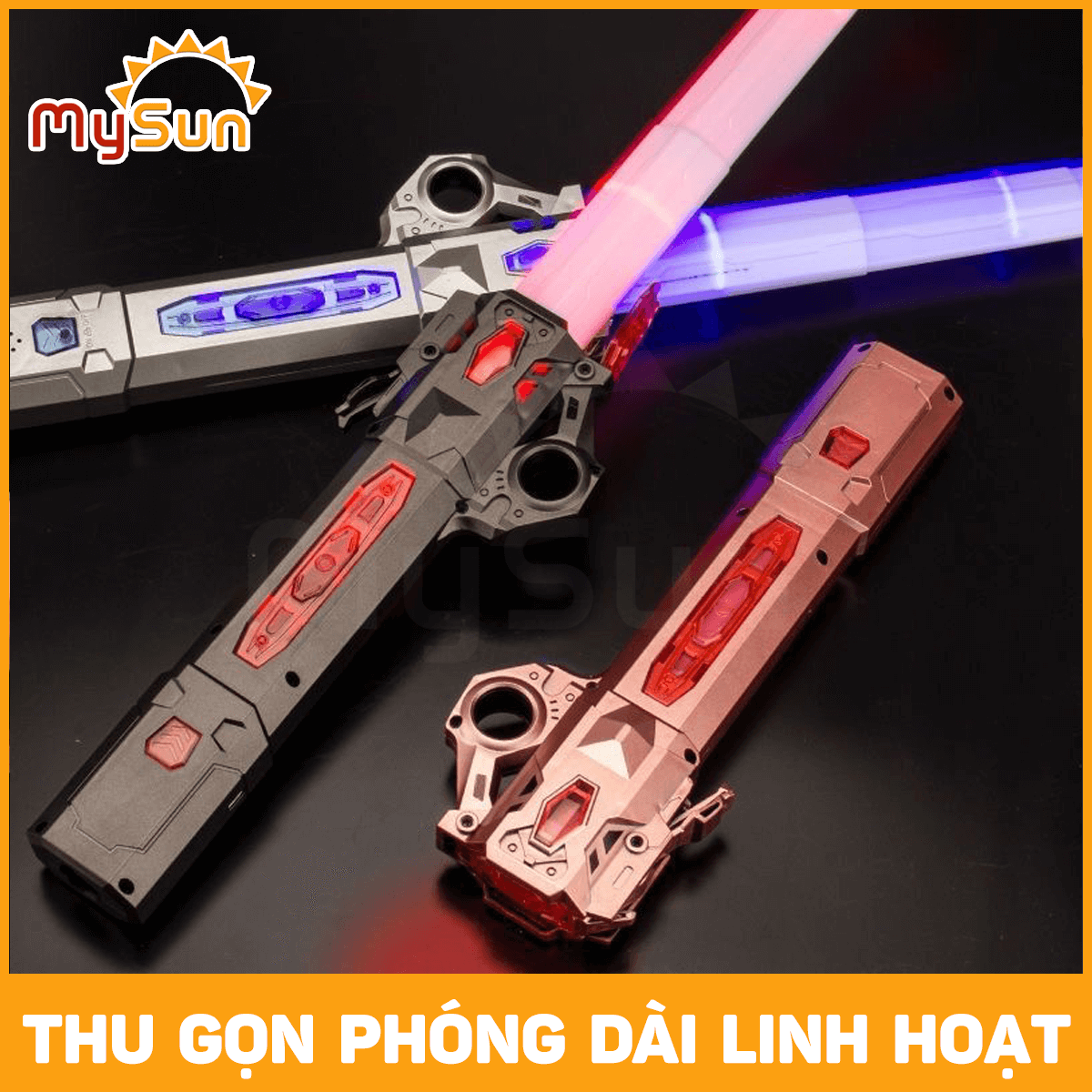✨Kiếm Laser phát ánh sáng Lazer nhựa đồ chơi thu gọn cho trẻ em bé ghép 2 đầu tặng PIN MySun