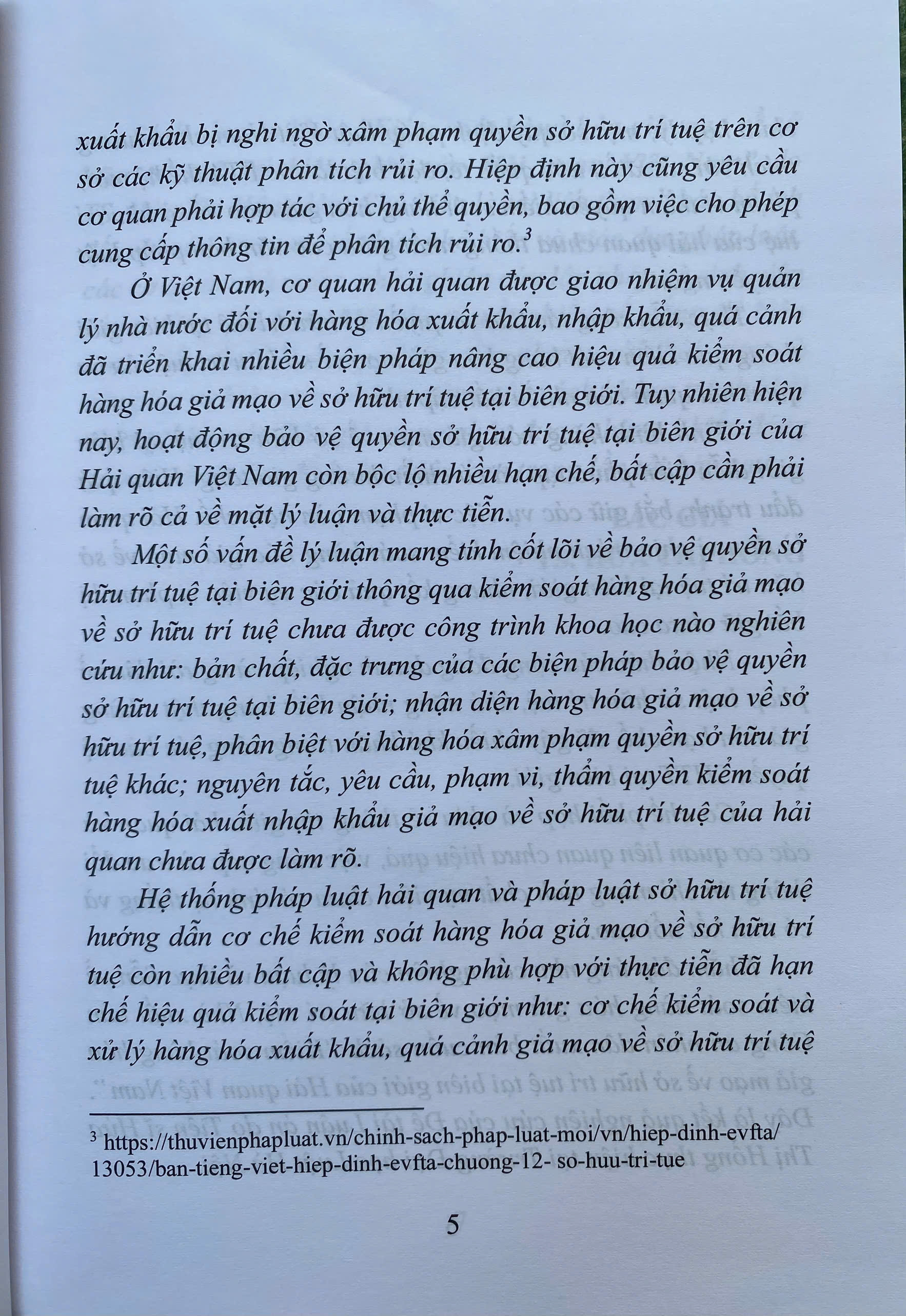 Ở Việt Nam, cơ quan hải quan được giao nhiệm vụ quản lý nhà nước đối với hàng hóa xuất khẩu, nhập khẩu, quá cảnh đã triển khai nhiều biện pháp nâng cao hiệu quả kiểm soát hàng hóa giả mạo về sở hữu trí tuệ tại biên giới. Tuy nhiên hiện nay, hoạt động bảo vệ quyền sở hữu trí tuệ tại biên giới của Hải quan Việt Nam còn bộc lộ nhiều hạn chế, bất cập cần phải làm rõ cả về mặt lý luận và thực tiễn.