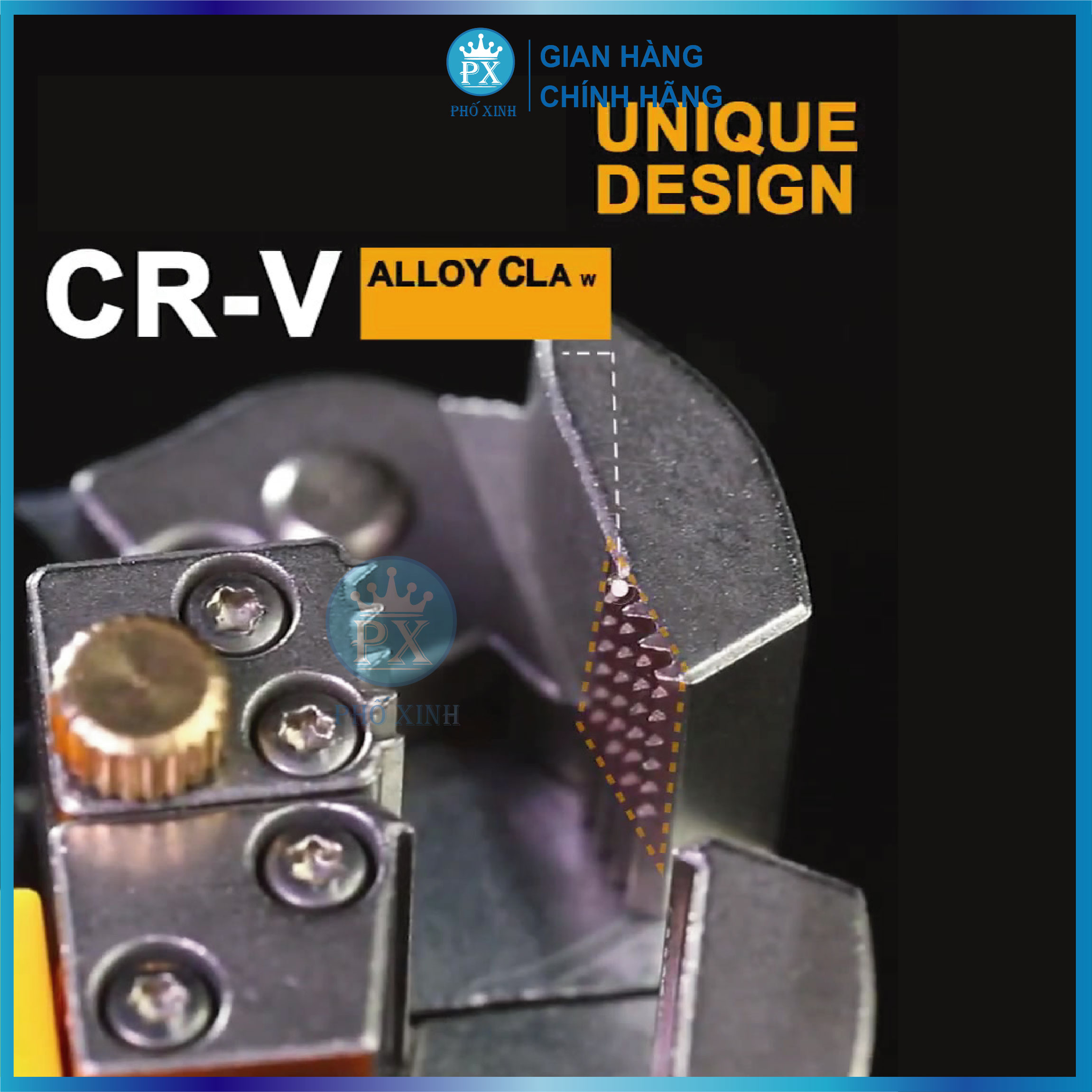 Chi Tiết Kỹ Thuật: · 9 điểm vảy giúp kẹp chính xác · Răng kẹp tôi đến 61 HRC, kìm Alligator có thể mở được mọi loại ốc cứng đầu · Sản xuất từ nguồn