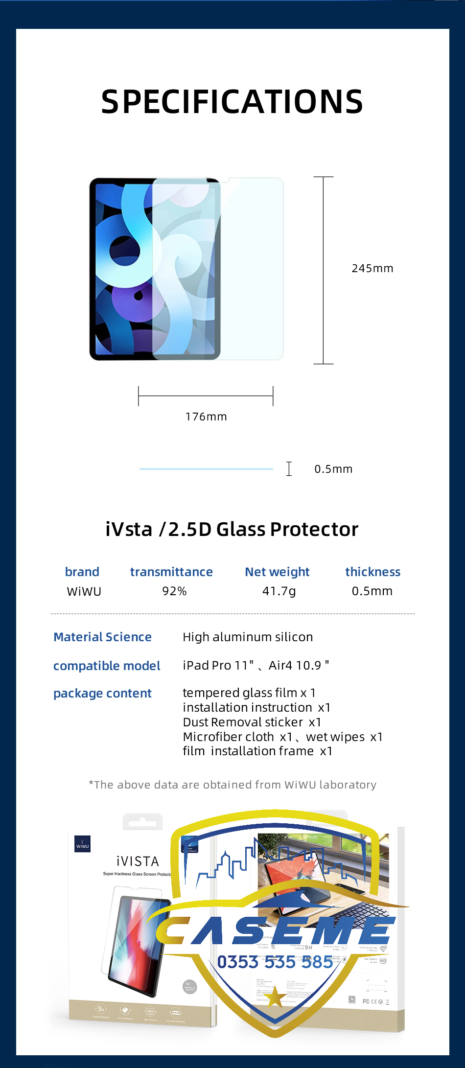 ✨Kính cường lực cho iPad 10.9 inch 2020 Air 4, Air 5 hiệu WiWU ivista, vát viền 2.5D, bảo vệ Full màn,chống xước, chống vỡ, trong suốt - Hàng chính hãng