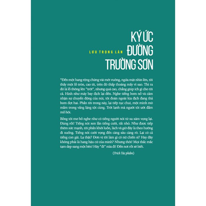 Ký ức đường Trường Sơn là tập bút ký gồm 16 bài, phát họa khá sinh động các bức tranh toàn cảnh con đường huyền thoại trong những năm chiến tranh ác liệt. Có mặt từ vị chính ủy nổi tiếng - Đặng Tính đến cán bộ, chiến sĩ bộ đội phòng không, công binh, lái xe, quân y, thanh niên xung phong, dân quân, tự vệ và quần chúng nhân dân. Mỗi câu chuyện là một kỷ niệm sâu sắc của tác giả, nhưng hết thảy đều lóng lánh khí phách anh hùng và bản chất cao đẹp của những con người ưu tú. Gian khổ, khó khăn vô bờ bến, cuộc đọ sức, sự hy sinh diễn ra từng giờ từng phút… sự tổn thất, mất mát không thể đếm đo… nhưng ở đâu, lúc nào cũng thấy lạc quan, yêu đời, sự thông minh, sáng tạo, tình yêu, tình bạn nồng thắm, tình quân dân đậm đà cá nước.