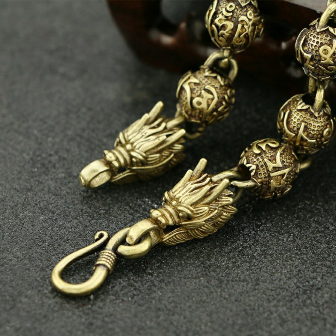 ✨LẮC TAY NAM ĐẦU RỒNG KHẮC OM MANI PADME HUM BẰNG ĐỒNG