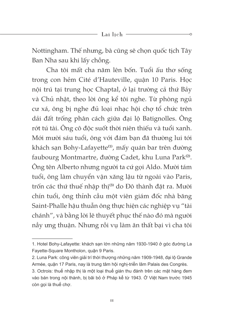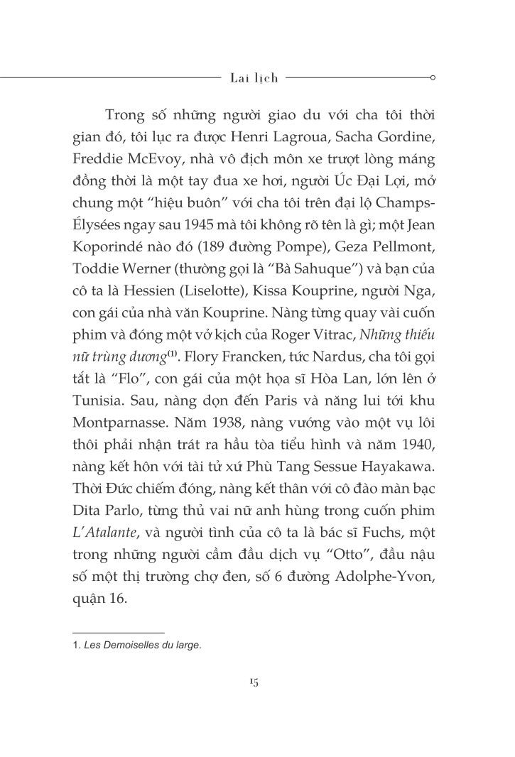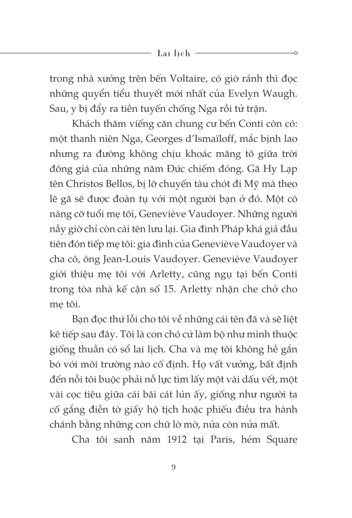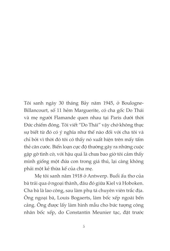 "Tôi viết những dòng này giống như người ta soạn một biên bản hoặc một bản lý lịch trích ngang, để làm tài liệu tham khảo, và hẳn là để dứt khoát với một quãng đời không phải của tôi. Những sự kiện mà tôi nhắc đến, từ thuở ấu thơ cho đến năm hai mươi mốt tuổi, tôi đã trải qua như trong một vở diễn, khi mà người ta cho các khung cảnh lướt đi ở đằng sau còn các diễn viên vẫn bất động trên sân khấu. Tôi muốn diễn tả cái cảm giác mà nhiều người đã từng cảm nhận trước tôi: mọi thứ cứ thế trôi qua, mà tôi vẫn chưa thể sống cuộc sống của chính m.ình."