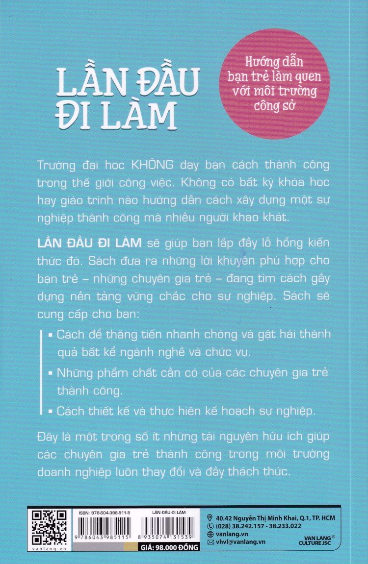 Lần Đầu Đi Làm Trường đại học KHÔNG dạy bạn cách thành công trong thế giới công việc. Không có bất kỳ khóa học hay giáo trình nào hướng dẫn cách xây dựng một sự nghiệp thành công mà nhiều người khao khát. LẦN ĐẦU ĐI LÀM sẽ giúp bạn lấp đầy lỗ hổng kiến thức đó. Sách đưa ra những lời khuyên phù hợp cho bạn trẻ – những chuyên gia trẻ – đang tìm cách gầy dựng nền tảng vững chắc cho sự nghiệp. Sách sẽ cung cấp cho bạn: