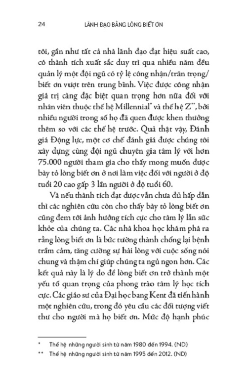 Người lao động muốn biết và cần biết công việc của mình có được trân trọng hay không. Bày tỏ lòng biết ơn đúng cách với nhân viên là phương thức đơn giản nhất, nhanh nhất, cũng như ít tốn kém nhất để tăng cường hiệu quả làm việc và giữ chân nhân viên lâu dài. Nhưng bằng cách nào, ngoài tiền thưởng và lời khen đôi khi có vẻ sao rỗng? "Lãnh Đạo Bằng Lòng Biết Ơn" sẽ gợi ý cho bạn. Quyển sách này đi sâu bàn luận một yếu tố tâm lý trong quản trị là lòng biết ơn và đưa ra những các thức đơn giản và thiết thực để phát huy yếu tố đó trong môi trường công sở hằng ngày nhằm thúc đẩy tinh thần, hiệu quả và lợi nhuận. Với giọng văn dễ hiểu, nhẹ nhàng và những ví dụ thiết thực, sau mỗi phần thực hành đều có phần tóm tắt để độc giả dễ nhớ và dễ theo dõi, quyển sách sẽ dẫn bạn qua từng phần, từ những hiểu lầm về cách thể hiện lòng biết ơn nơi công sở, đến những cách thức để áp dụng lòng biết ơn đến cách thể hiện lòng biết ơn cả trong đời sống cá nhân lẫn môi trường công sở.