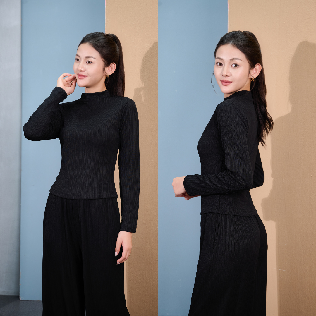 Bộ thun nữ cổ thấp Laroma phù hợp mặc thời tiết se lạnh.. Kết hợp cùng áo gió hoặc áo khoác Laroma để tăng hiệu quả giữ ấm tốt nhất