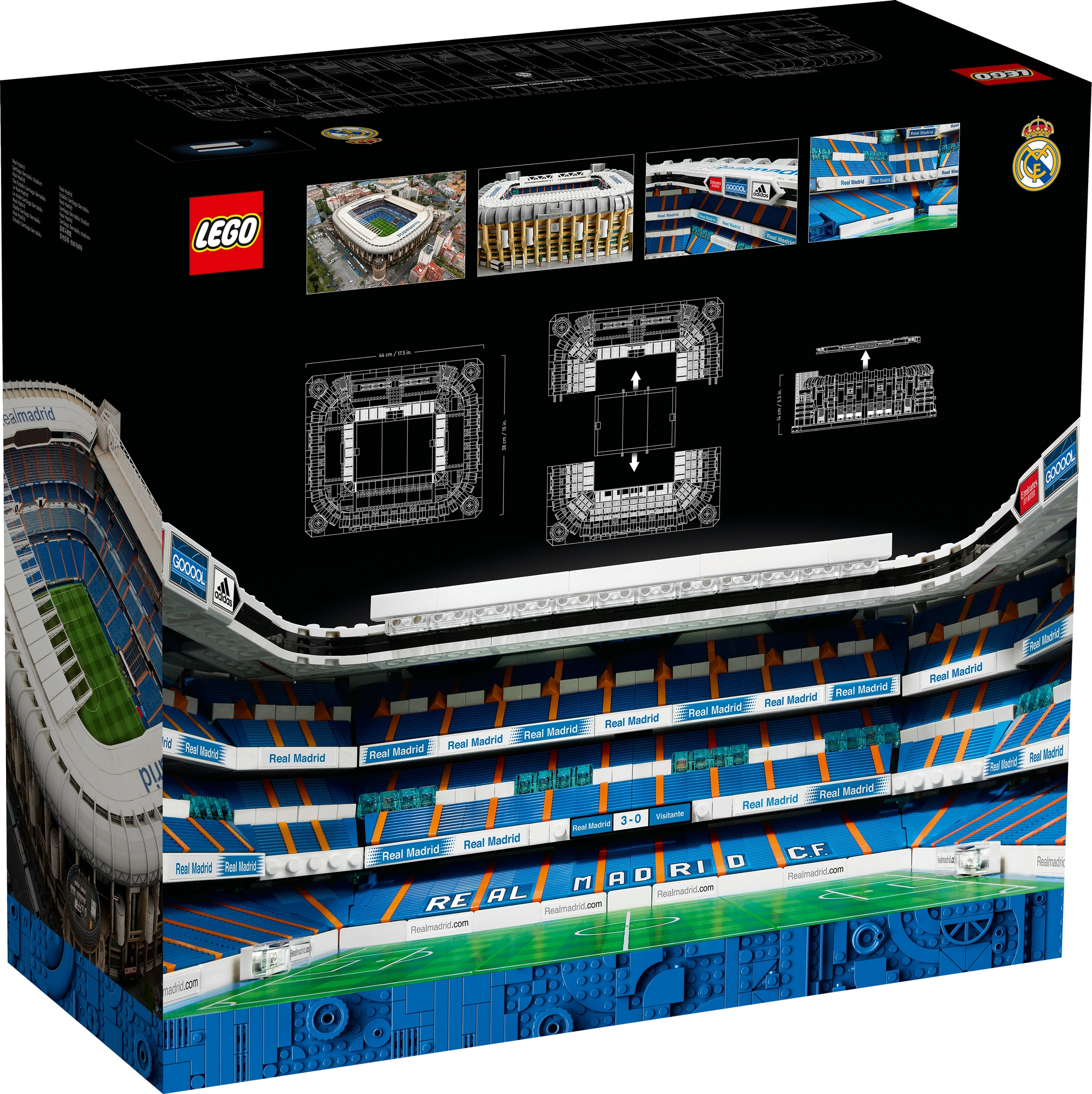 Tiếng hò reo của đám đông. Niềm vui sướng của một bàn thắng. Những màn cổ vũ náo nhiệt khi anh hùng của bạn ghi bàn. Để lưu giữ tất cả những điểm nổi bật của một ngày thi đấu với bộ mô hình dành cho người trưởng thành LEGO Sân Vận Động Santiago Bernabéu - Real Madrid. Điều hướng sự tập trung của bạn như một nhà vô địch khi bạn lắp ráp các chi tiết của sân vận động mang tính biểu tượng, như 4 tháp ở góc, lối đi và cầu thang. Sau đó, đưa mô hình của bạn lên trưng bày để tri ân câu lạc bộ yêu thích của bạn.