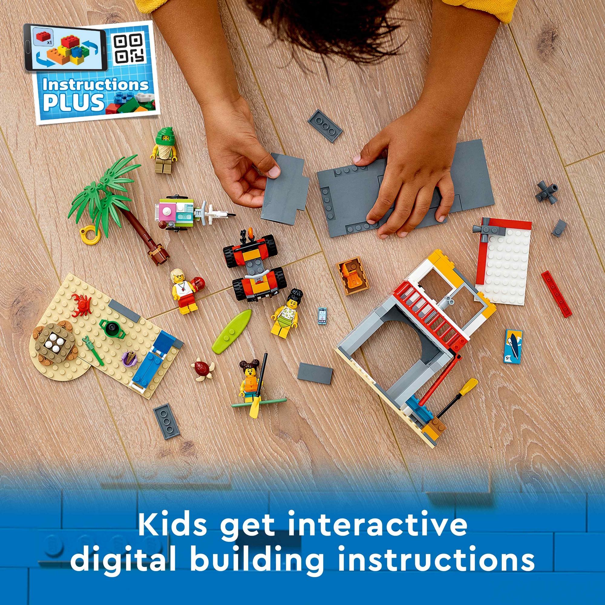 Những ngày tươi đẹp không bao giờ kết thúc với bộ mô hình LEGO City Trạm cứu hộ biển (60328) gồm một tòa nhà 2 tầng với phòng điều khiển và nhiều thiết bị cứu hộ, bao gồm cả xe địa hình phong cách. Các bé còn có thêm một xe đẩy bán kem đầy màu sắc và khung cảnh bãi biển với tấm mặt đường để kết nối với các bộ LEGO khác. Chỉ cần thêm mô hình thu nhỏ của chú rùa, cua và 4 nhân vật để có hàng giờ vui chơi thỏa sức tưởng tượng. Bộ mô hình LEGO này dành cho các bé từ 5 tuổi trở lên, có hướng dẫn lắp ráp dạng bản in và hướng dẫn kỹ thuật số có sẵn trong ứng dụng Hướng dẫn lắp ráp LEGO miễn phí. Hướng dẫn kỹ thuật số trực quan đi kèm với các công cụ thu phóng và xoay tuyệt vời cho phép trẻ hình dung mô hình từ mọi góc độ khi lắp ráp. Trẻ em học tập trong lúc vui chơi với các bộ mô hình LEGO City có các tòa nhà phong phú, phương tiện tuyệt vời và nhân vật vui nhộn. Trẻ em tìm hiểu về thế giới xung quanh thông qua các câu chuyện và kịch bản mô tả cuộc sống thực một cách vui nhộn và thú vị.