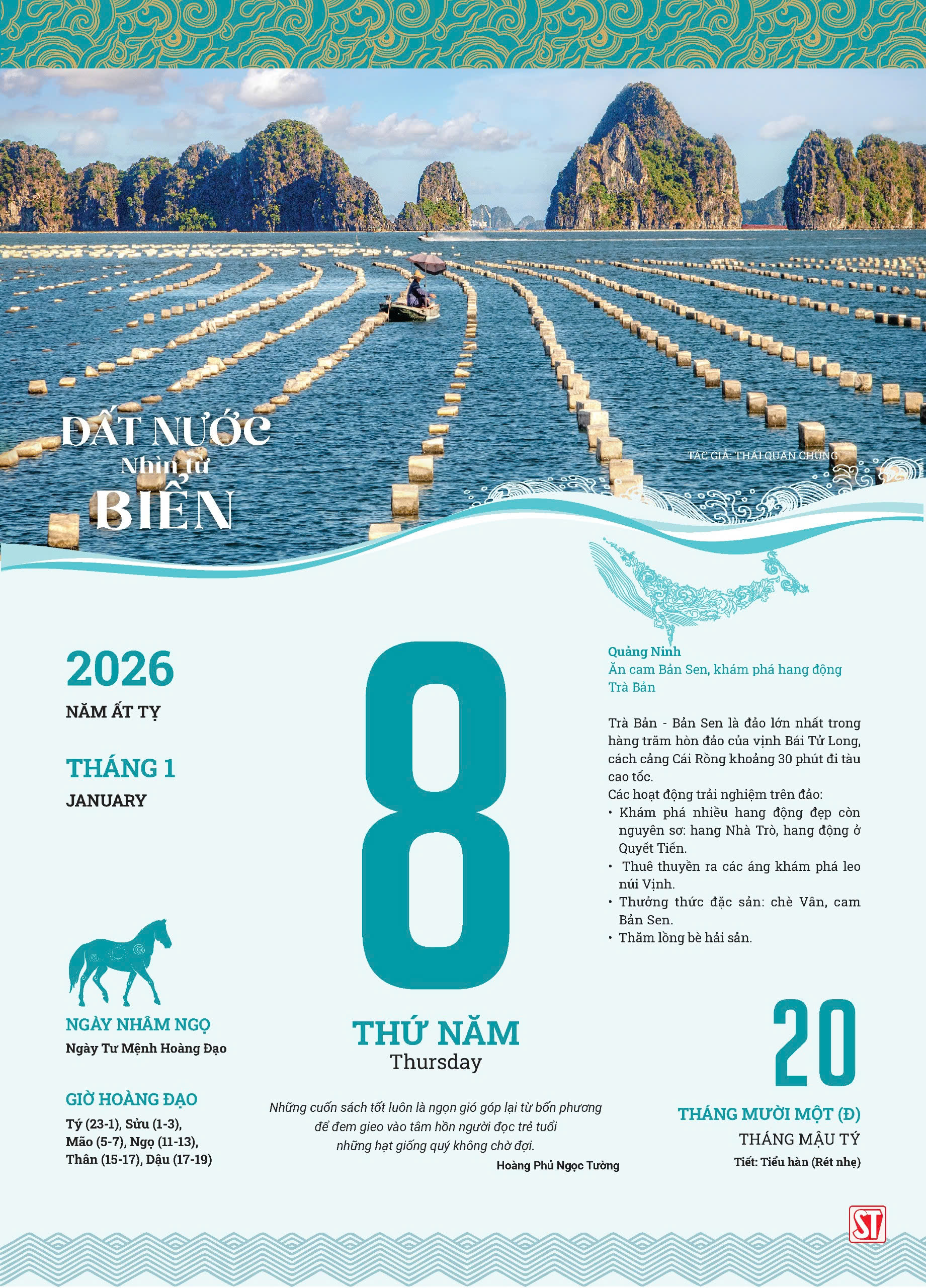 Lịch Blốc 2026 “Đất nước nhìn từ biển” Bộ lịch này tập trung vào vẻ đẹp của các vùng biển đảo Việt Nam, nguồn tài nguyên thiên nhiên phong phú và cuộc sống sôi động