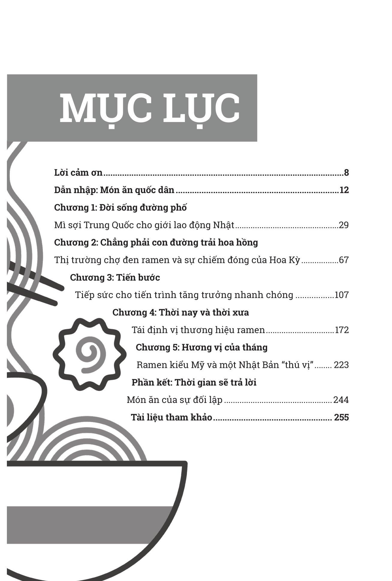 Đi sâu vào câu chuyện nơi mì ăn liền trở thành biểu tượng của sự hiện đại, các biến thể vùng miền vẽ nên bức tranh đa dạng về văn hóa và các cửa hàng ramen nhộn nhịp như những nhân chứng thầm lặng cho dòng thời gian đang thay đổi. Cuốn sách đặt ramen dưới một góc nhìn hoàn toàn mới, không chỉ là món ăn tiện lợi mà còn là minh chứng cho khả năng phục hồi và đổi mới của một quốc gia. Tác giả sử dụng món mì như một lăng kính để khám phá các chủ đề chính trị xã hội rộng lớn hơn trong lịch sử Nhật Bản, chẳng hạn như ảnh hưởng của Mỹ sau chiến tranh, phép màu kinh tế của Nhật Bản cũng như những cuộc đấu tranh và chiến thắng của quốc gia này. Qua đây, người đọc có thể hiểu được chiều sâu lịch sử, ý nghĩa văn hóa đằng sau một bát mì tưởng chừng đơn giản.