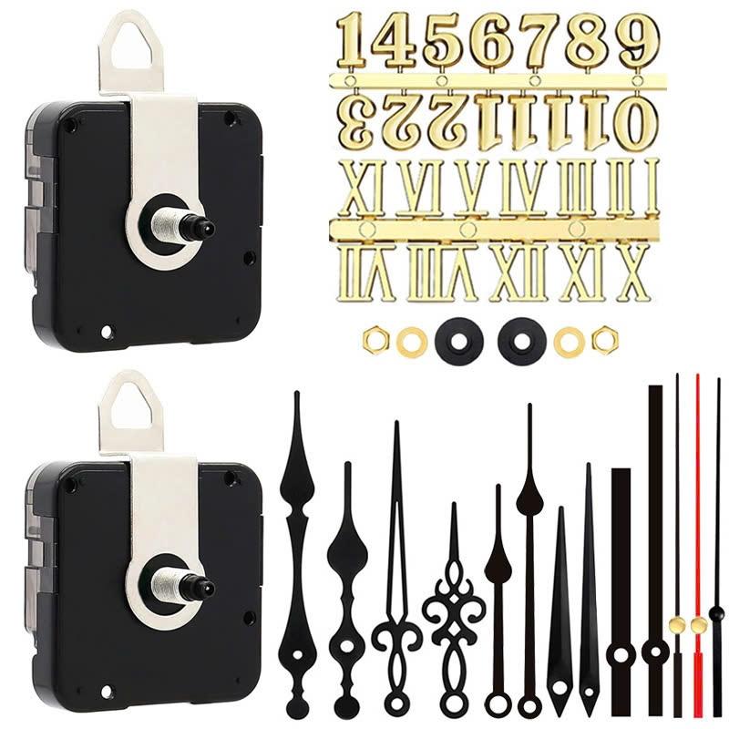 MÔ TẢ SẢN PHẨM Bộ linh kiện gắn đồng hồ treo tường, đồng hồ dán tường cỡ lớn bao gồm: 01 máy đồng hồ: Quartz (chạy 2 kim cỡ lớn) 01 bộ 2 kim (Kích