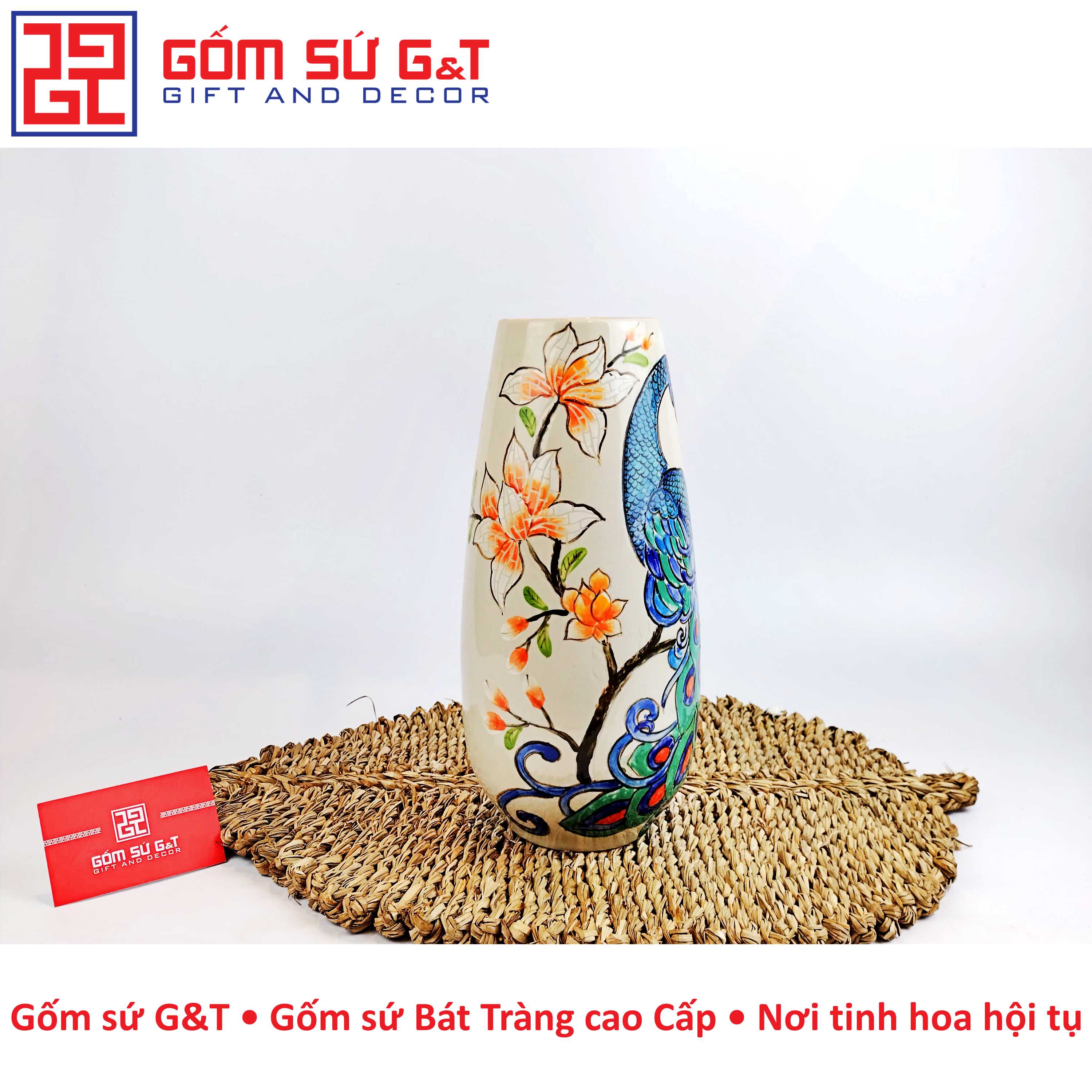 Bình hoa cao cấp Bát Tràng, hàng chuẩn loại 1, dáng chum họa tiết đắp nổi được thực hiện thủ công 100% bởi bàn tay lành nghề của các nghệ nhân làng nghề. Sản phẩm