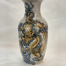 Lọ lộc bình Rồng đắp nổi men rạn cao cấp Bát Tràng cao 25cm