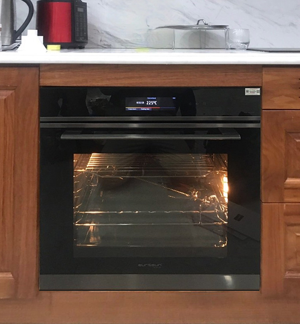 Lò nướng âm tủ EOV72TFT có thiết kế đẹp mắt, điều khiển cảm ứng TFT với màn hình màu sắc nét. Lò được thiết kế bề mặt kính cường lực 3 lớp, chịu lực chịu nhiệt, chống tia UV. Sản phẩm mang một nét đẹp thanh lịch theo phong cách châu Âu.