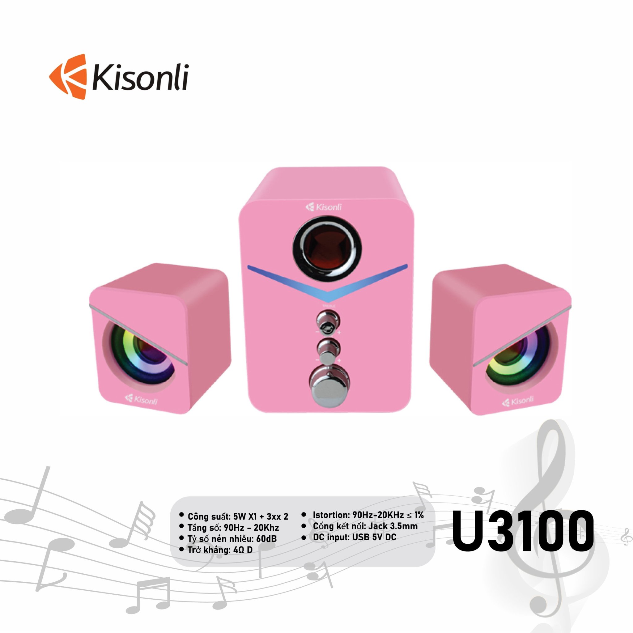 ✨Loa 2.1 Kisonli U-3100 Pink LED - HÀNG CHÍNH HÃNG