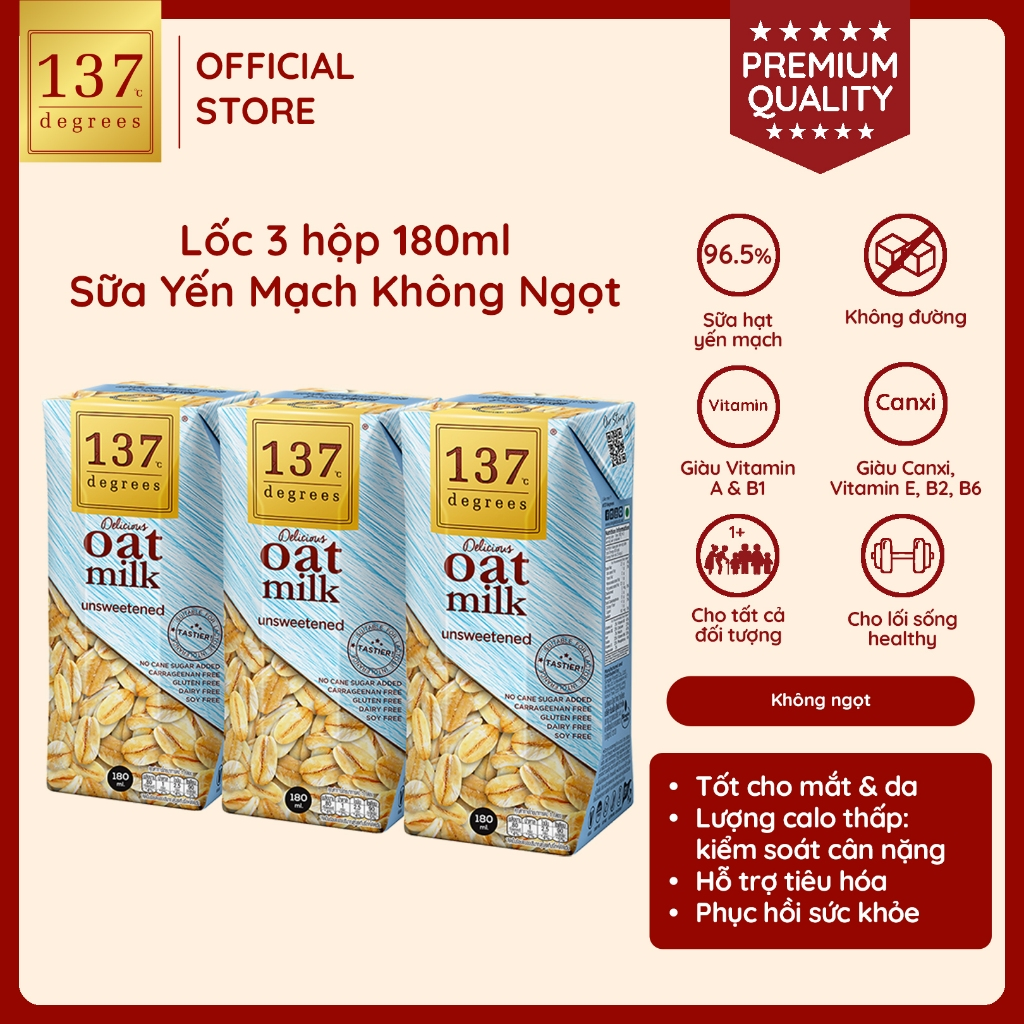 Sữa hạt 137 Degrees là thương hiệu sữa hạt dinh dưỡng số 1 tại Thái Lan, với thành phần hạt tươi nguyên chất đến 99% KHÔNG ĐƯỜNG, KHÔNG CHẤT BẢO QUẢN, KHÔNG PHA TRỘN SỮA BÒ/ SỮA ĐẬU NÀNH, dùng mật hoa dừa hữu cơ tạo vị ngọt thanh nhẹ cho sữa, nguồn hạt hạnh nhân chất lượng từ California, Hoa Kỳ.