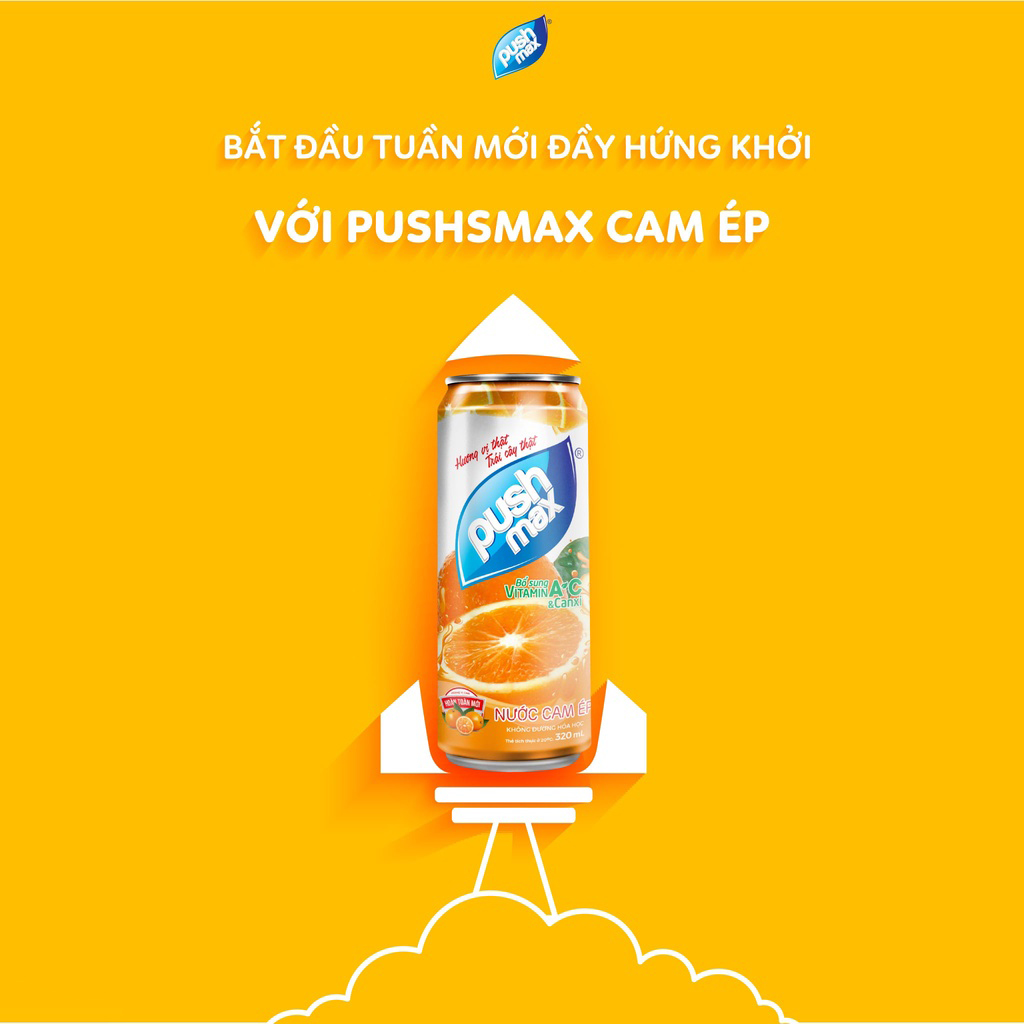 ✨Lốc 6 Lon Cam Ép Pushmax Hương Vị Tự Nhiên (320ml x 6 Lon)
