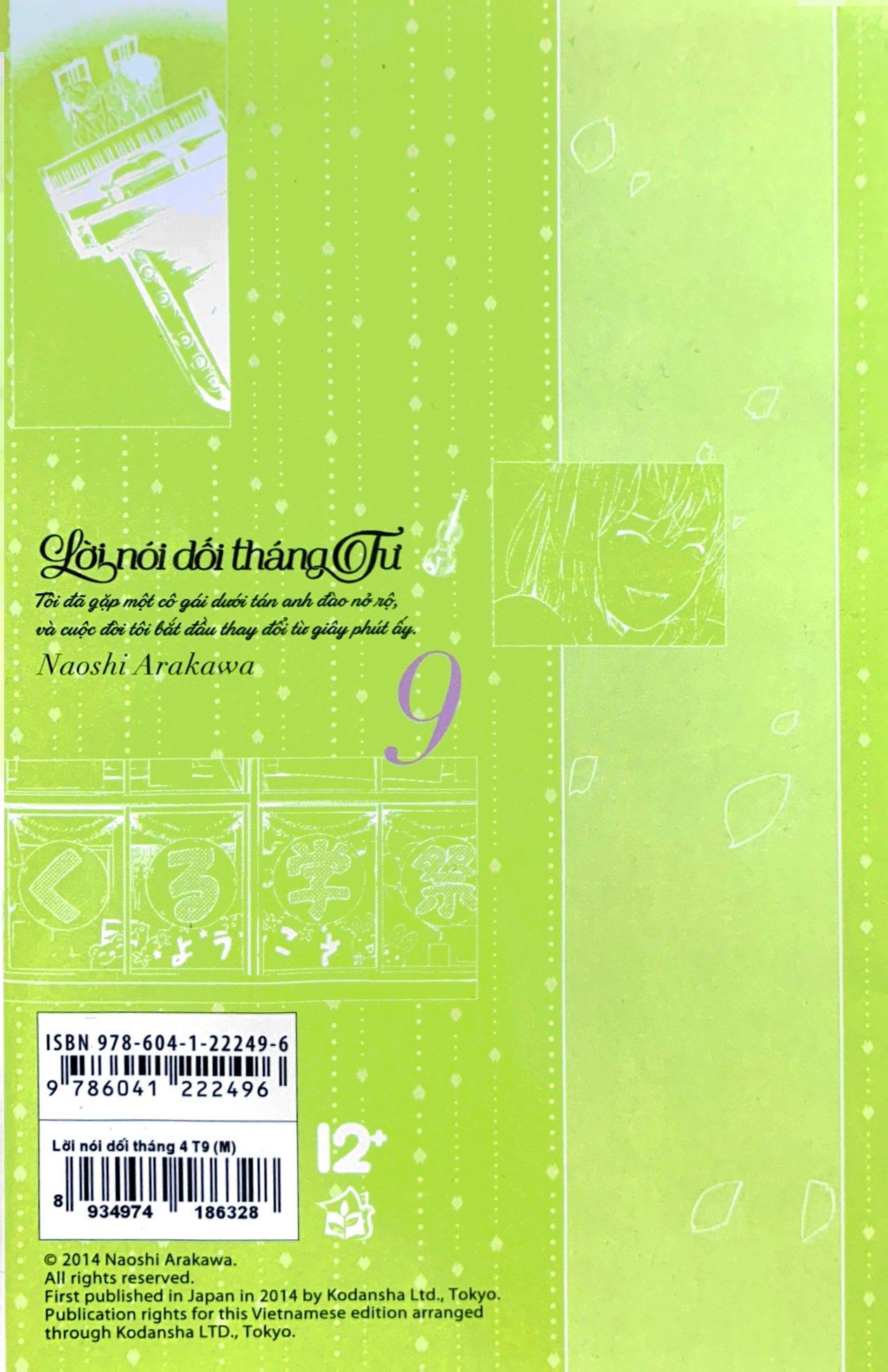 Arima Kousei, thần đồng Piano một thời đã không thể chơi đàn được nữa sau cái chết của mẹ. Cậu trải qua những ngày đơn điệu, sống cuộc sống không có mục đích. Cho đến một ngày nọ vào mùa xuân, cậu đã gặp một cô gái dưới tán hoa anh đào đang nở rộ. Cô ấy rất bạo lực, tính khí thì thất thườ nhưng cô ấy cũng chính là người đã thay đổi cả thế giới tẻ nhạt của cậu! Cuộc hội ngộ ấy đã mang đến cho cậu động lực và cơ hội để thoát khỏi nỗi ám ảnh trong quá khứ như thế nào? "Hình phạt" mà cậu phải chịu, phần tâm hồn vẫn luôn sợ hãi, vẫn luôn đấu tranh của cậu sẽ ra sao? Những mâu thuẫn liệu có được giải quyết? Đón đọc Lời nói dối tháng Tư - một câu chuyện về tình bạn, tình yêu, về tình mẹ con, tình đối thủ, một câu chuyện về tuổi trẻ, về cuộc sống.
