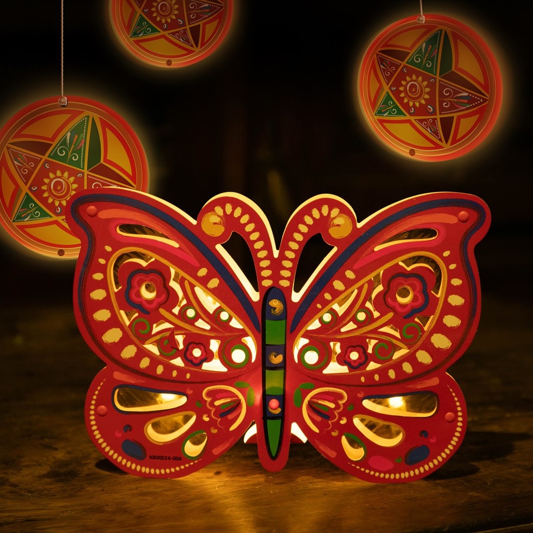 Lồng đèn Trung Thu - Lồng đèn trang trí "Ký ức tuổi thơ" hình Bướm tái hiện lại hình ảnh đặc trưng của Tết Trung Thu xưa Lung linh nhất về trung thu xưa có lẽ lại gắn liền với những chiếc lồng đèn trung thu nhiều kiểu dáng, mộc mạc nhưng không kém phần rực rỡ. Ánh sáng nhỏ bé ấy không chỉ tô điểm cho bầu không khí đoàn viên thêm ấm cúng, mà còn là ngọn lửa thắp sáng bao ước mơ, hy vọng và là nhân chứng chứng kiến bao niềm vui nỗi buồn của các thành viên trong gia đình. ĐẶC ĐIỂM NỔI BẬT SẢN PHẨM