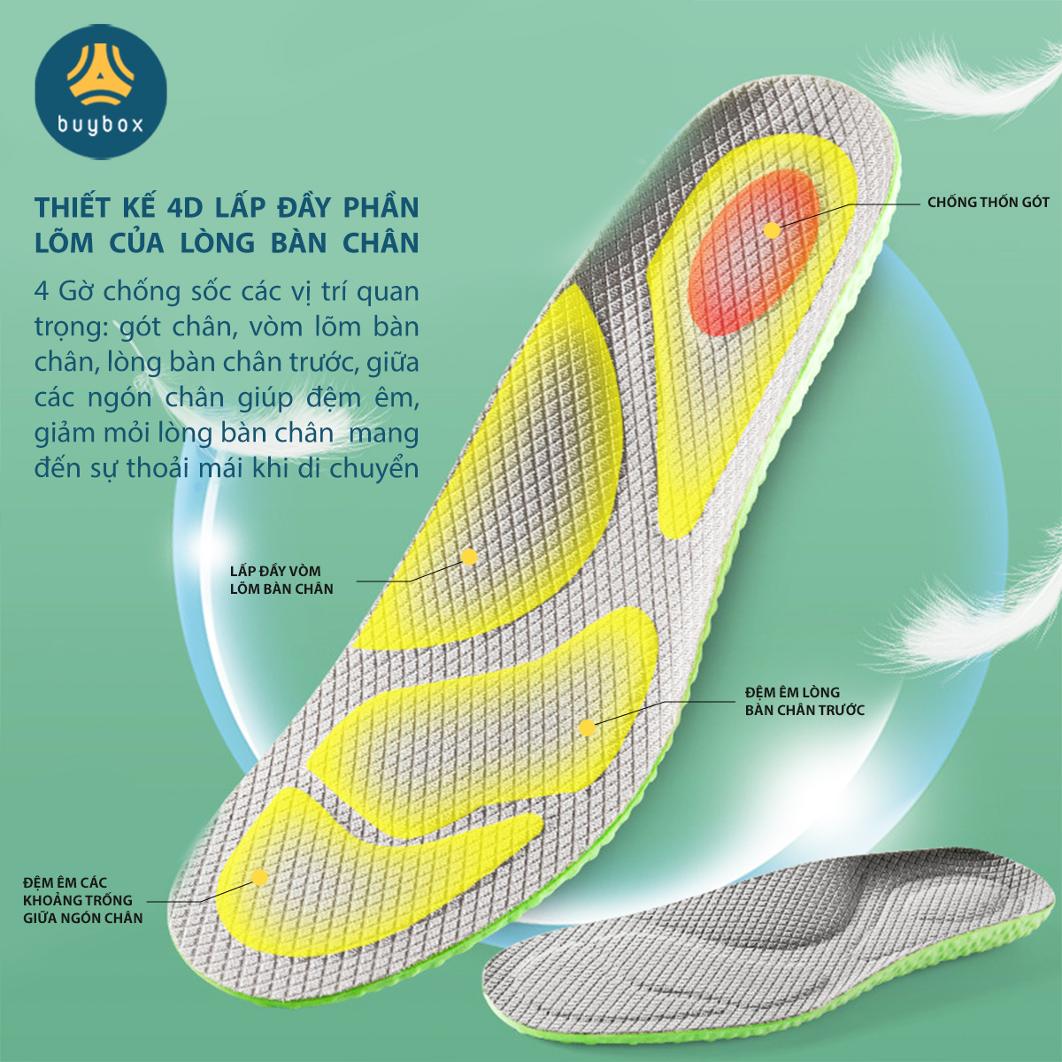 ✨Lót giày thể thao mesh 4D ốp mút đệm khí giảm chấn vòm ngang và chống thốn gót - buybox - BBPK360