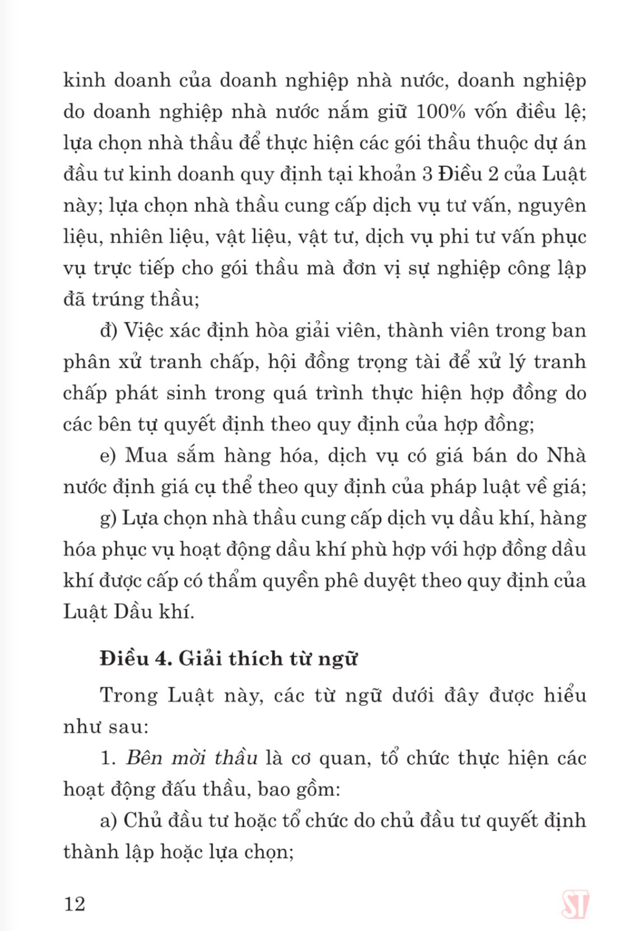 Luật Đấu thầu. Chương 1