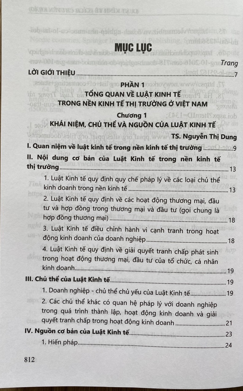 Luật Kinh Tế (DH) GIỚI THIỆU SÁCH Nội dung cuốn sách gồm các chương mục như sau: Phần 1. Tổng quan về luật kinh tế trong nền kinh tế thị trường ở Việt Nam Chương
