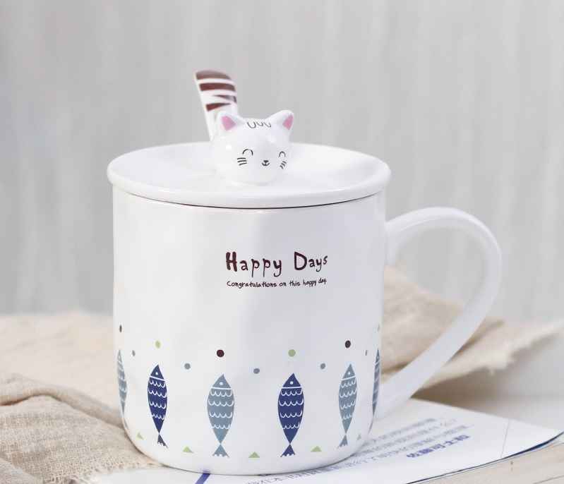- Ly gốm sứ Mèo nắp sứ màu Trắng 350ml