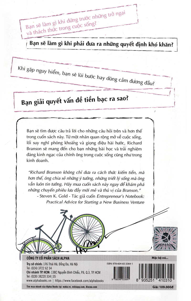Bạn sẽ làm gì khi đứng trước những trở ngại và thách thức trong cuộc sống? Bạn sẽ làm gì khi phải đưa ra những quyết định khó khăn? Bạn giải quyết vấn đề tiền bạc ra sao? Hay nhận thức các vấn để toàn cầu như thế nào? Câu trả lời sẽ được tìm thấy trong cuốn sách đầy thú vị Mặc kệ nó, làm tới đi! của Richard Branson – Chủ tịch của Virgin, đứng thứ 5 trong danh sách các doanh nhân giàu nhất nước Anh và xếp thứ 254 trong danh sách tỷ phú của tạp chí Forbes năm 2011 – đồng thời cũng là tác giả cuốn tự truyện nổi tiếng Đường ra biển lớn đã được Alpha Books xuất bản năm 2012. Cuốn sách đã được dịch sang 15 thứ tiếng khác nhau và là một trong những cuốn sách bán chạy trên toàn thế giới, được xếp hạng là đầu sách bestseller tại Nam Phi và Australia.