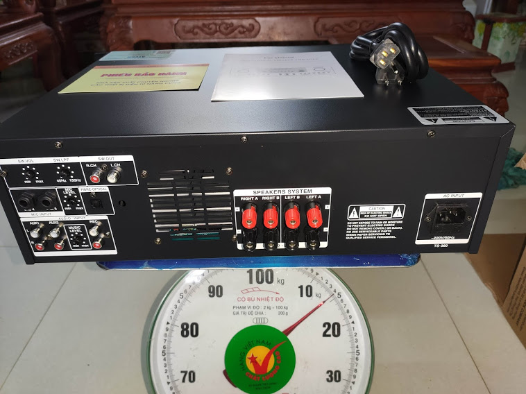 Amply chuyên dụng cho nhà nuôi yến. Thông số kỹ thuật: - Đáp ứng Tần Số Đầu Vào:20Hz-20KHz(+-2dB) - Điện Áp Đầu Vào:AC 220-240V 50Hz - Tỷ lệ tạp âm: 0.15% - Tỷ Lệ Tín
