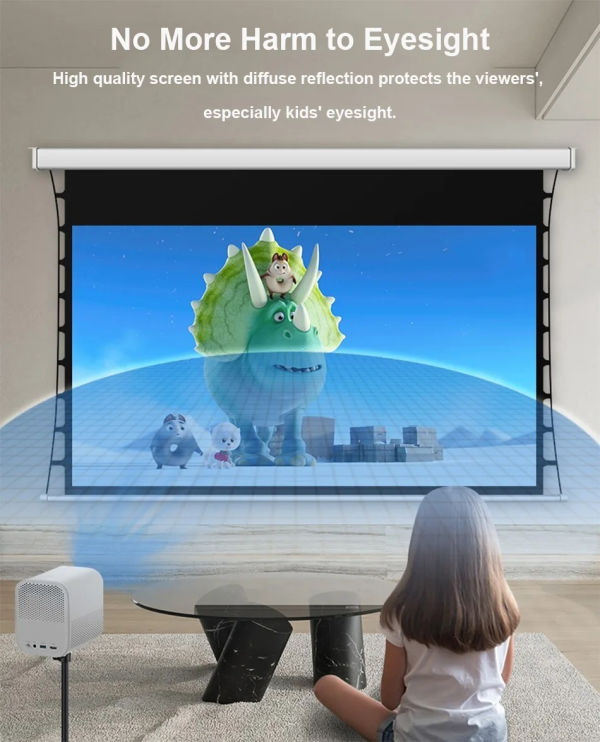 Tương thích tốt với các dòng máy chiếu Full HD, 2K, 4K, 8K. Tỷ lệ khung hình 16:9 – phù hợp cho nhu cầu giải trí, phim ảnh và thuyết trình chuyên nghiệp. Các kích thước có sẵn: 100”, 120”, 135”, 150”. ️ Hệ thống điều khiển & động cơ:
