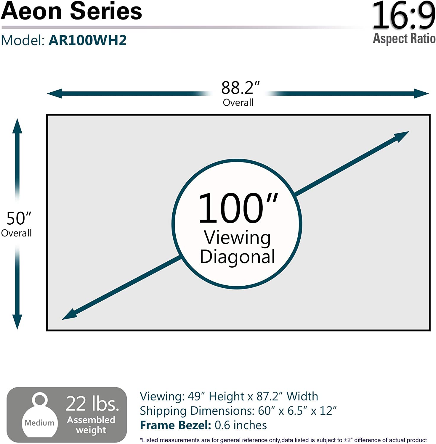 ✨Màn Chiếu Elite Screens Dòng Aeon, 100 inch Tỷ lệ Khung Hình 16:9 (vùng hiển thị 124.5 x 221.4 cm) Gain 1.3 (AR100WH2) – Hàng Chính Hãng