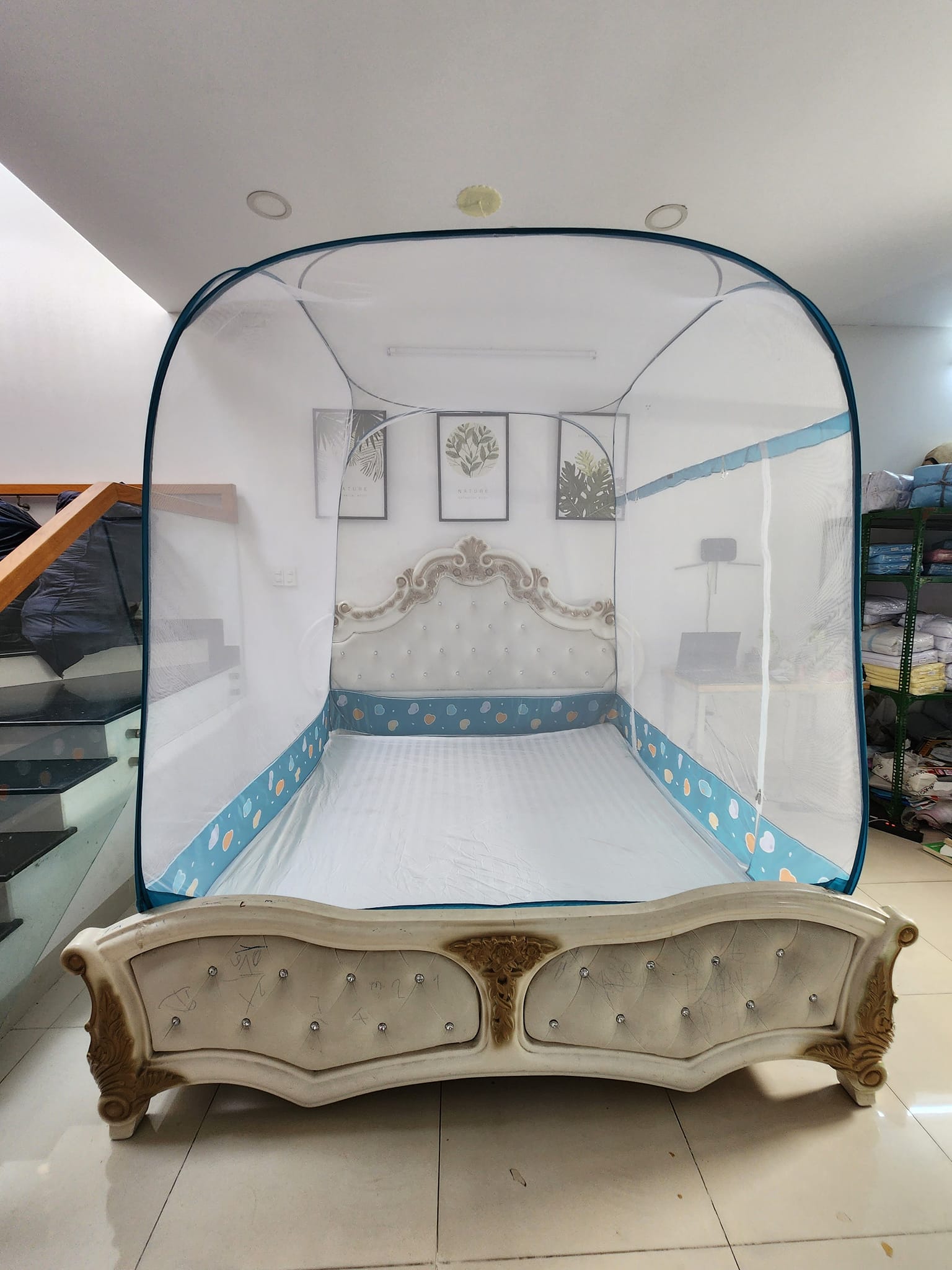 MÀN CHỤP , MÙNG CHỤP CAO CẤP MỘC MIÊN ĐỈNH RỘNG : Màn chụp tự bung cao cấp Mộc Miên đỉnh rộng trắng viền hồng loại 1,6m x2m - 3 cửa : Xuất xứ :