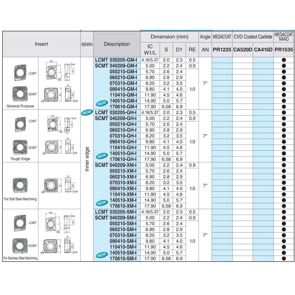 Work material: P (steel) / M (stainless steel) / K (cast iron)