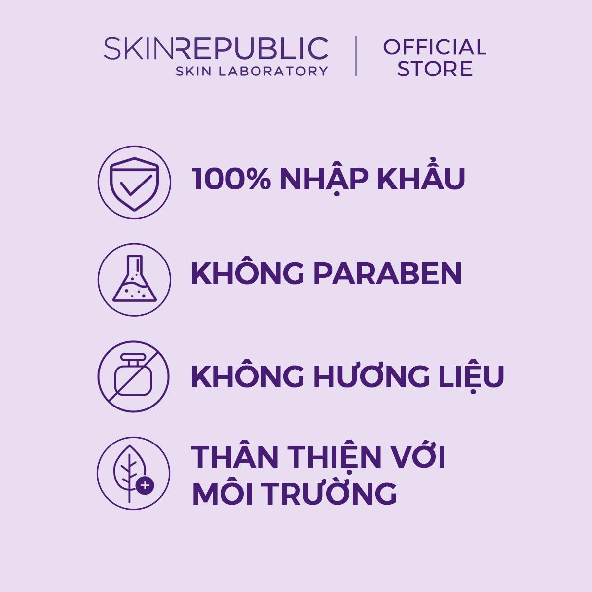 Mua tại TiktokMặt nạ dưỡng da Skin Republic Vitamin C Brightening Face Mask 25ml Chứa thành phần vitamin C đậm đặc, có khả năng thẩm thấu sâu vào lớp biểu bì, ức chế sự sản sinh melanin, giúp làm mờ các vết thâm mụn, đốm nâu hiệu quả. Hàm lượng vitamin C dồi dào trong mặt nạ sẽ giúp bảo vệ da khỏi những tác động từ tia UV, dưỡng da trắng hồng rạng rỡ. HƯỚNG DẪN SỬ DỤNG