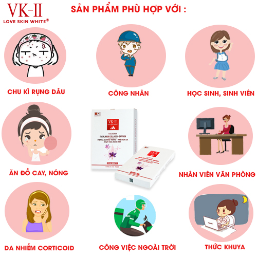 *Thành phần : Water, Panax Ginseng Extract, Glycerin, Paraffinum Liquidum, Dimethicone, Carbomer, Aloe Vera Callus Extract, Phenoxyethanol ( 1% ), Tocopherol, Parfum. *Công dụng :   - Mặt nạ Nâng Cơ VK II chiết xuất từ