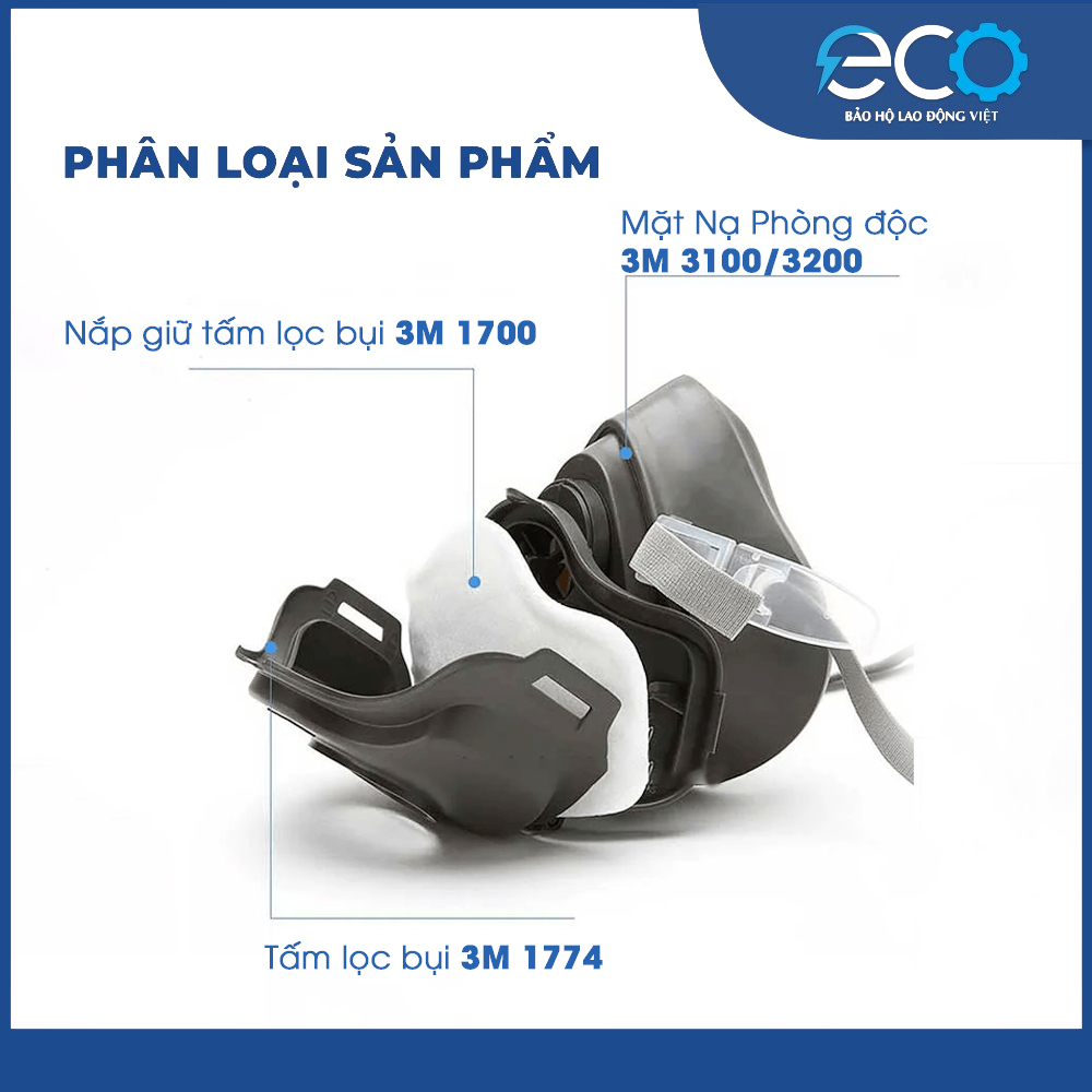 - 1 Nắp Giữ Tấm Lọc Bụi 3M 1700 Mặt nạ chống độc 3M 3100 là dòng sản phẩm bảo hộ lao động cao cấp. Mặt nạ nửa mặt 3100 đạt tiêu chuẩn NIOSH. Chúng được thiết kế để sử dụng trong môi trường độc hại chống lại các mối nguy dạng bụi, hơi và khí. ️ Thông tin sản phẩm mặt nạ chống độc 3M 3100, 3200