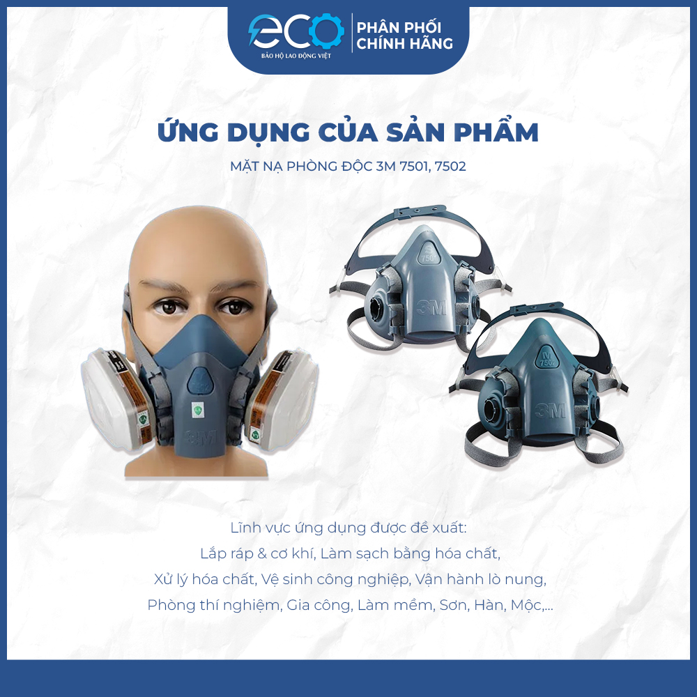 • Không dùng cho môi trường thiếu oxy hoặc khí độc đặc biệt nguy hiểm. Xuất xứ: 3M Việt Nam / nhập khẩu từ Mỹ Bảo quản: Nơi khô ráo, tránh ánh nắng trực tiếp.   Tại sao chọn 3M 7501/7502?