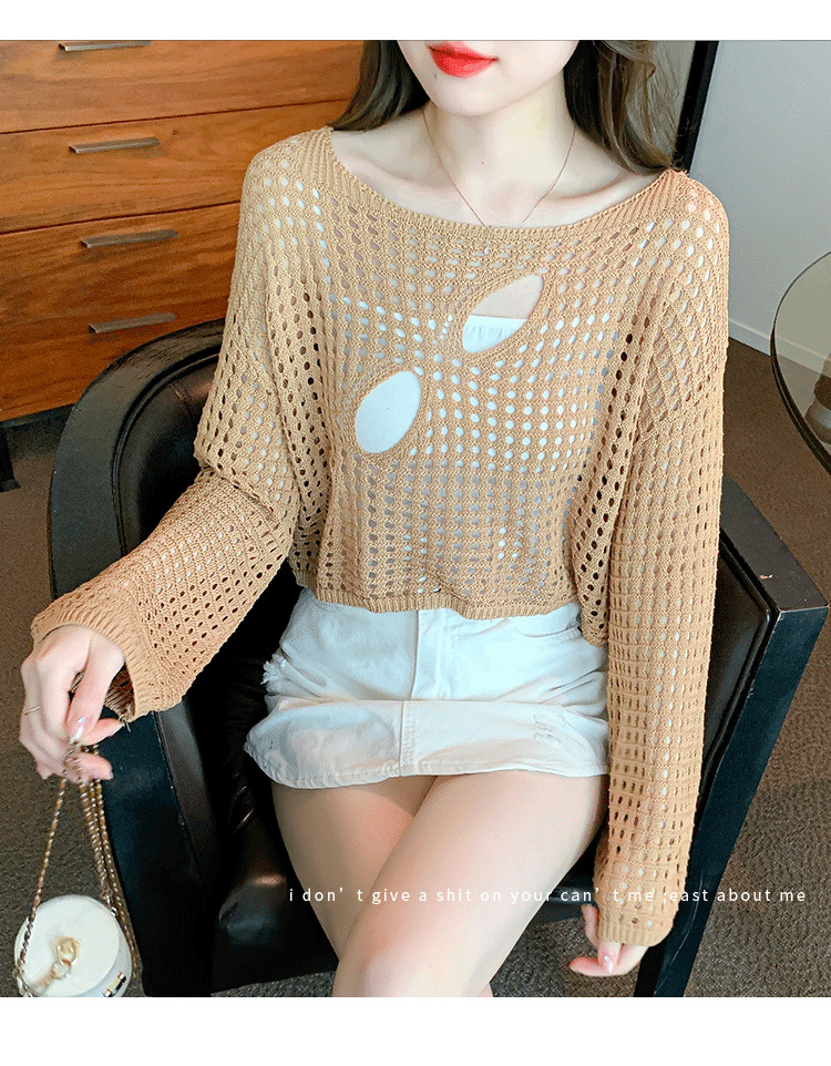[MẪU MỚI] Áo len dệt thưa tay dài cut out mặc ngoài C169 SẢN PHẨM KHÔNG KÈM ÁO MẶC BÊN TRONG ​​​​​​​Kích thước: Freesize dáng oversize (phù hợp nữ cao 1.5m->dưới 1.7m, nặng dưới 65kg