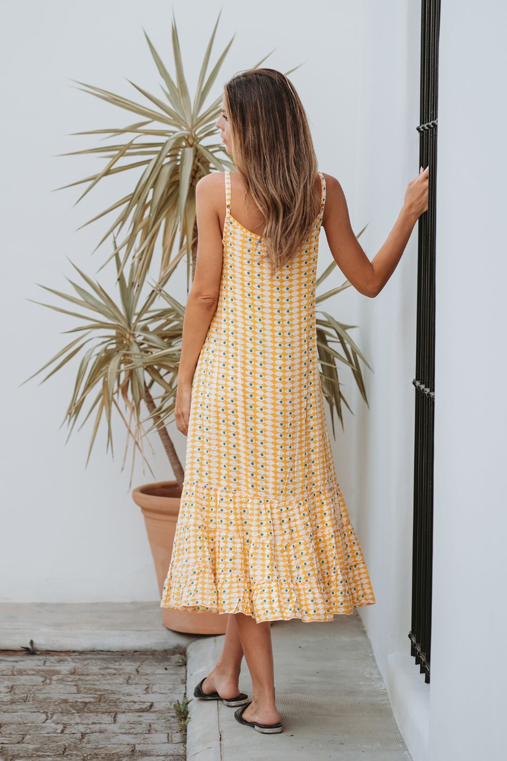 Maxi 2 Dây Họa Tiết Thổ Cẩm Cotton Isla Bonita, chất liệu cotton cao cấp mềm mại. Nổi bật phần lưng Cut out, cột nơ nữ tính. Lưng thun co giãn. Phom ôm. Dài đầm