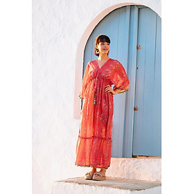 Maxi Boho Dài Tay Kết Cườm Cotton Isla Bonita, chất liệu cotton cao cấp, mềm mại, nổi bật phần ngực trước kết cườm sang trọng. Họa tiết thổ cẩm độc đáo. Phom suông. Dài Đầm