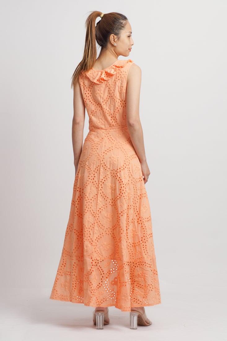 Maxi Cotton Cao Cấp Luna Llena, nền vải Lazer Cut độc đáo, tạo lỗ như ren, sang trọng, chất cotton dày dặn, thân trước đắp chéo, có thể tăng giảm eo. Phom rộng. Có lớp