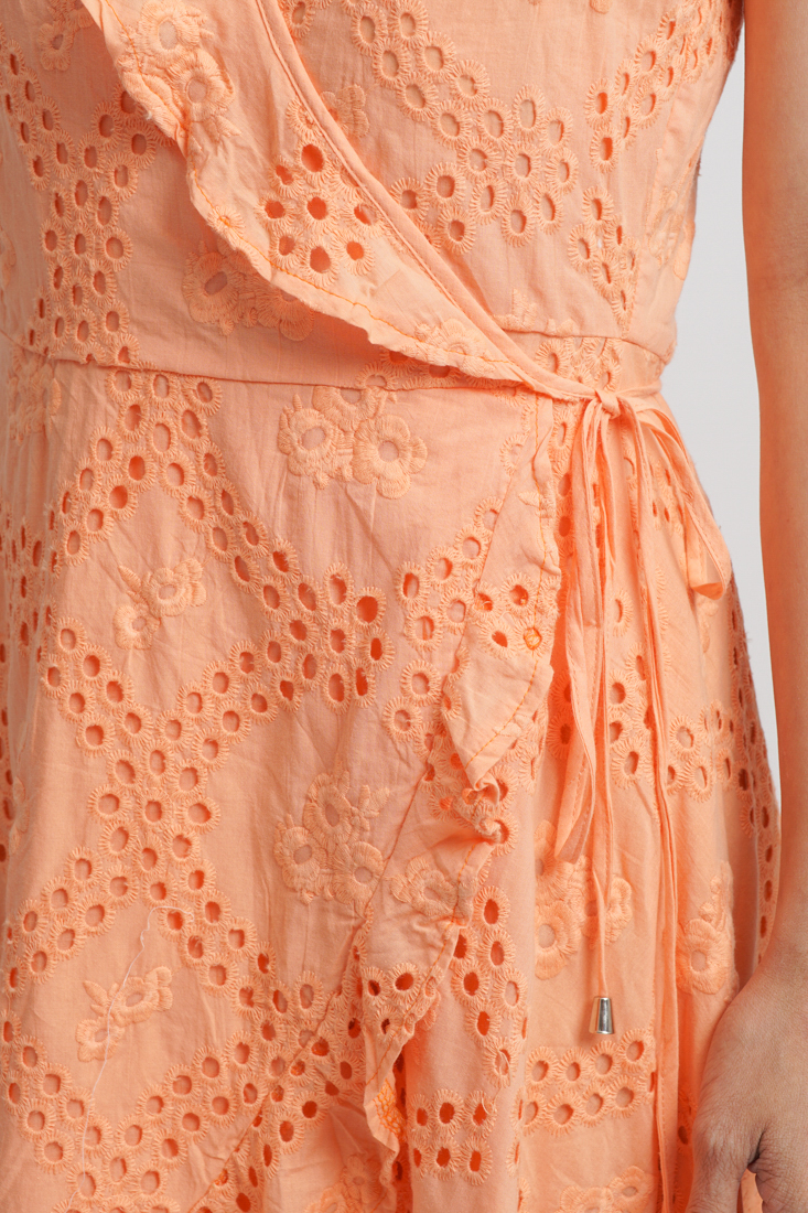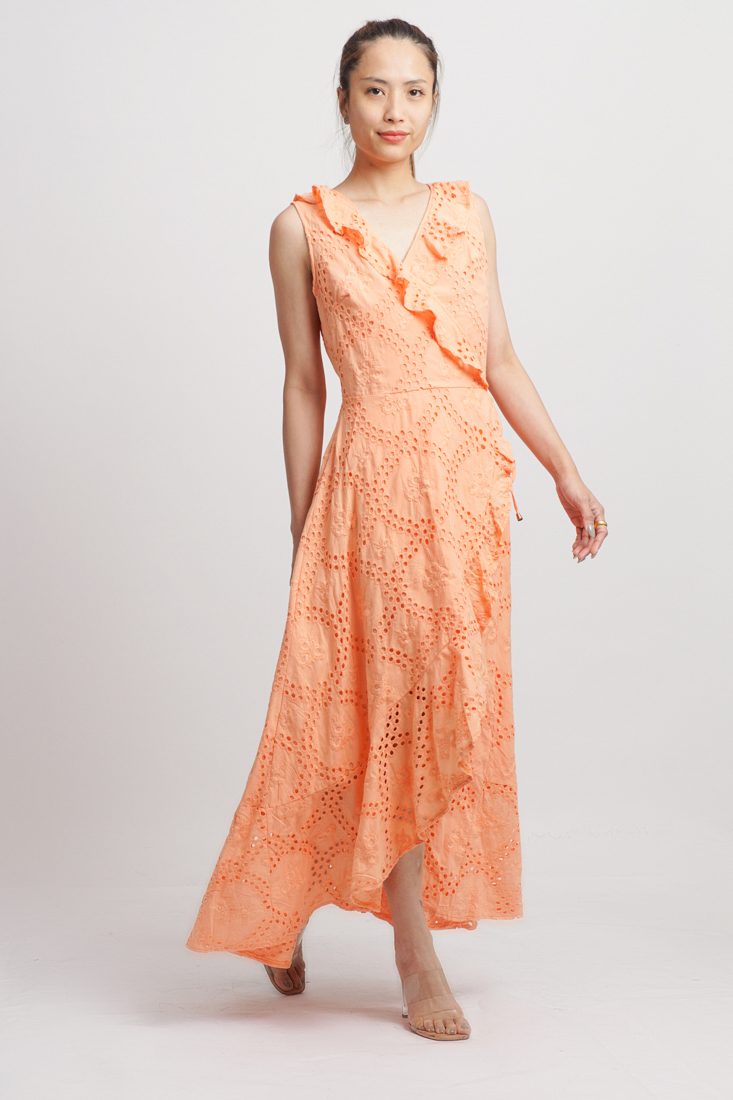 Maxi Cotton Cao Cấp Luna Llena, nền vải Lazer Cut độc đáo, tạo lỗ như ren, sang trọng, chất cotton dày dặn, thân trước đắp chéo, có thể tăng giảm eo. Lớp lót cao cấp.